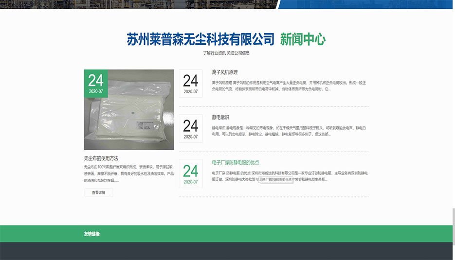 莱普森超净科技是一家在无尘静电人体防护、足部防护技术领域及内集研发、生产、营销于一体的科技创新型企业。